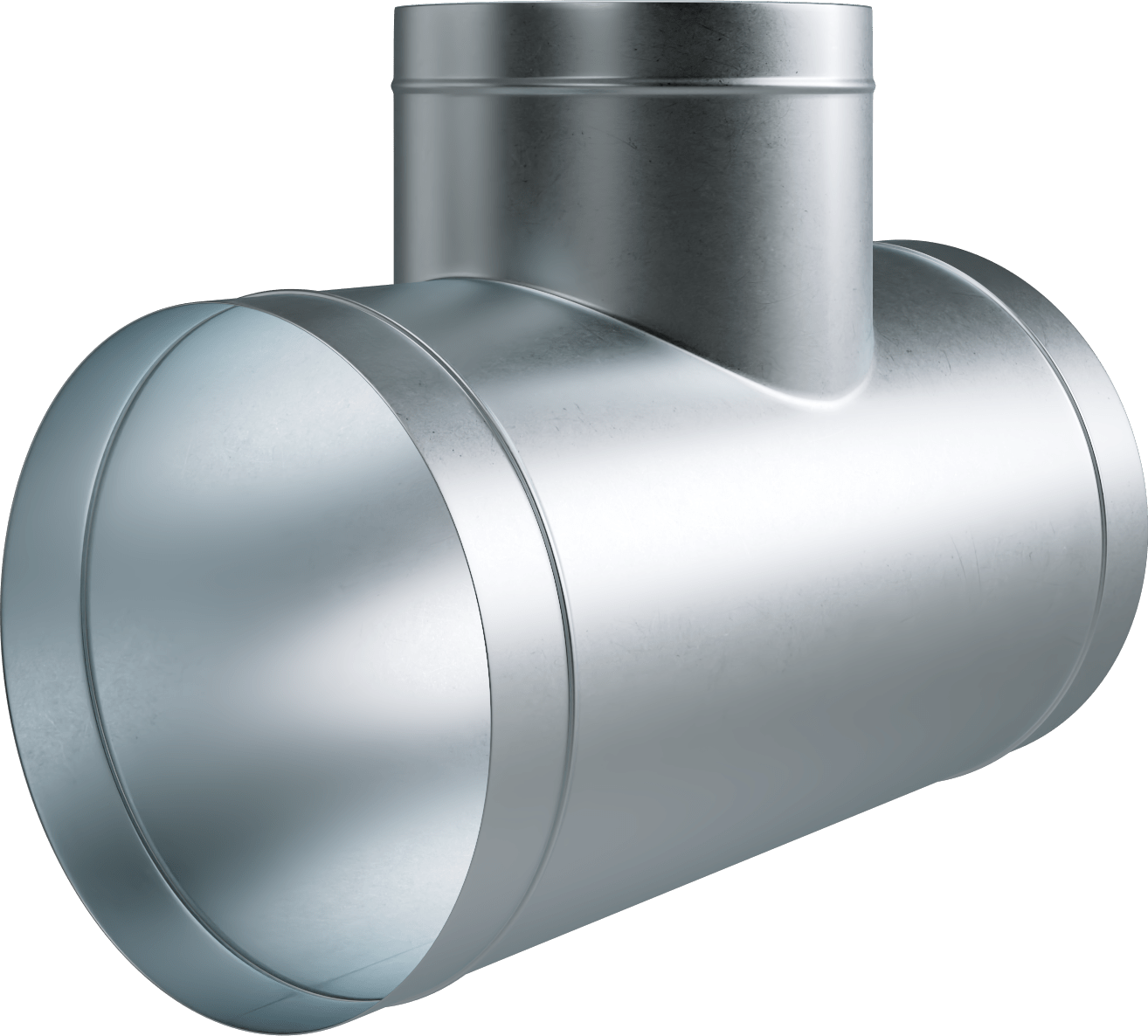 Spiral duct T-pieces SDT enable efficient branching of airflow in round duct systems. Their design ensures balanced distribution and reliable performance across connected sections.